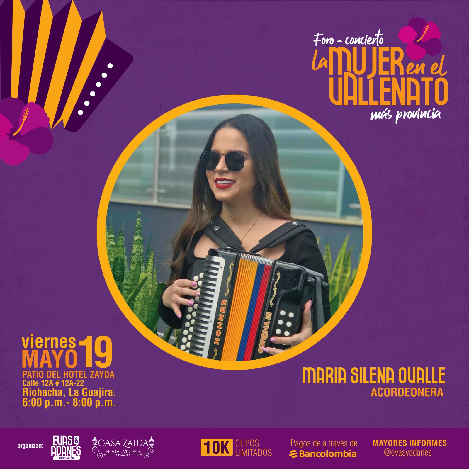 La Asociación Evas&Adanes como ejercicio de ciudadanía y compromiso con La Guajira; ha organizado con el apoyo de diversas entidades, un evento lleno de música, arte, creatividad y experiencias inspiradoras. El foro será un despliegue de riquezas culturales de LA GUAJIRA y el Caribe desde una visión académica y cultural con perspectiva de género, aspectos que son fundamentales para reinventar la sociedad y aportar a procesos de equidad e igualdad.