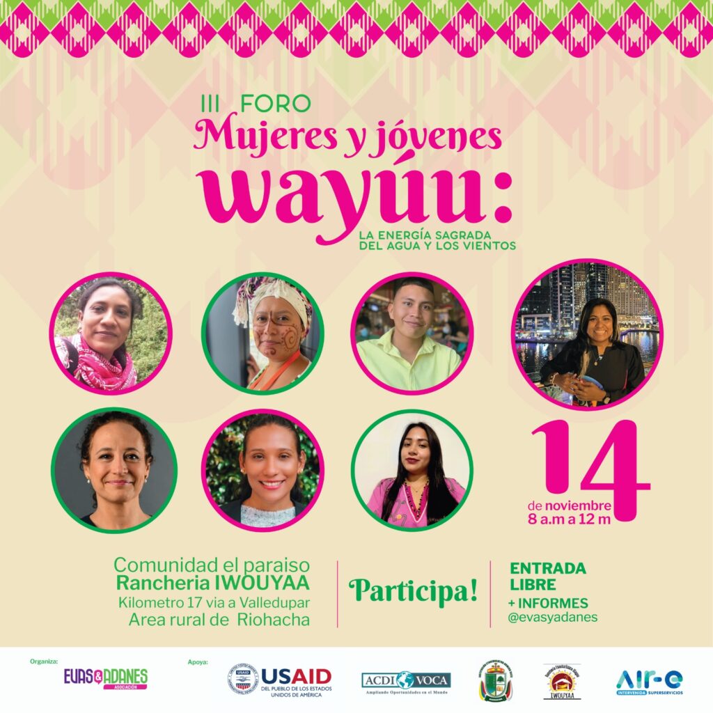 2. III versión del “Foro Mujeres y Jóvenes wayuu la energía sagrada del agua y los vientos” en la Ranchería iwouyaa en alianza con Acdivoca – Usaid y la empresa de energía Air-e.