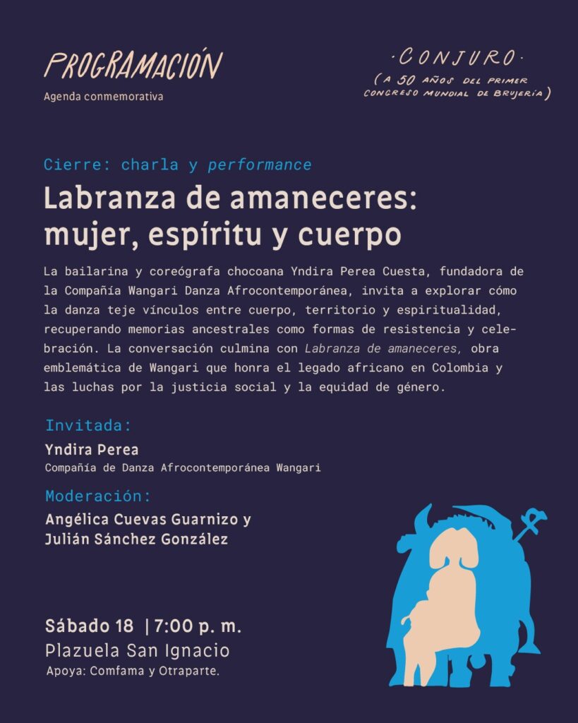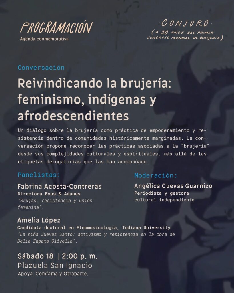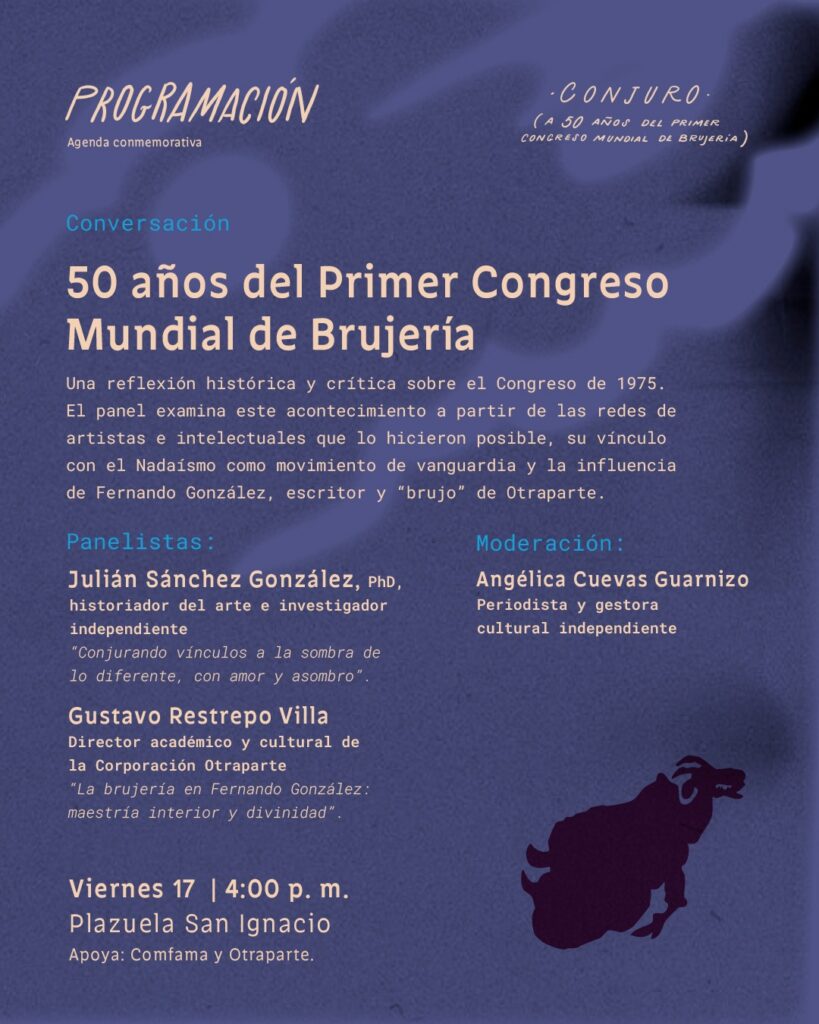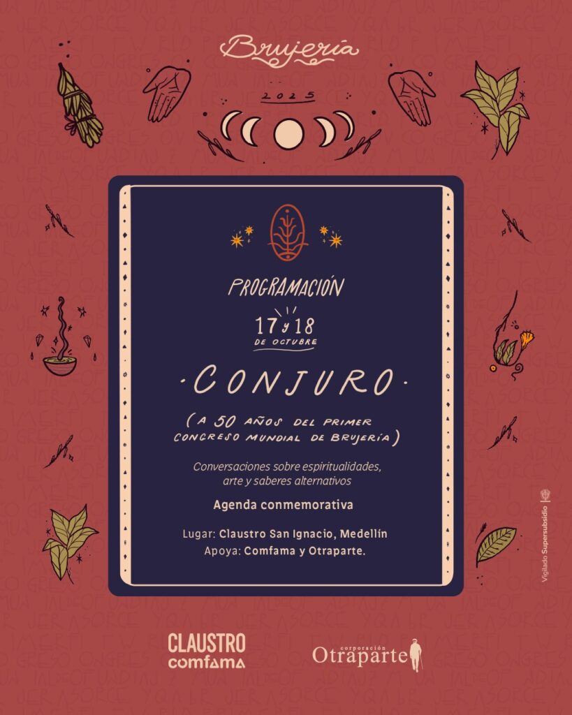 Cincuenta años después, esa misma motivación da lugar a Conjuro, una conferencia conmemorativa que se realizará el 17 y 18 de octubre en el Claustro San Ignacio, de Medellín. El evento, organizado por Julián Sánchez y la Corporación Otraparte, se inscribe en la primera feria Brujería, de Comfama. Durante dos días, en el corazón del centro de la ciudad se llevarán a cabo conversaciones sobre espiritualidades, arte y saberes alternativos que reunirán voces afros, feministas, académicas, artísticas y paganas para recordar y actualizar aquel legado.