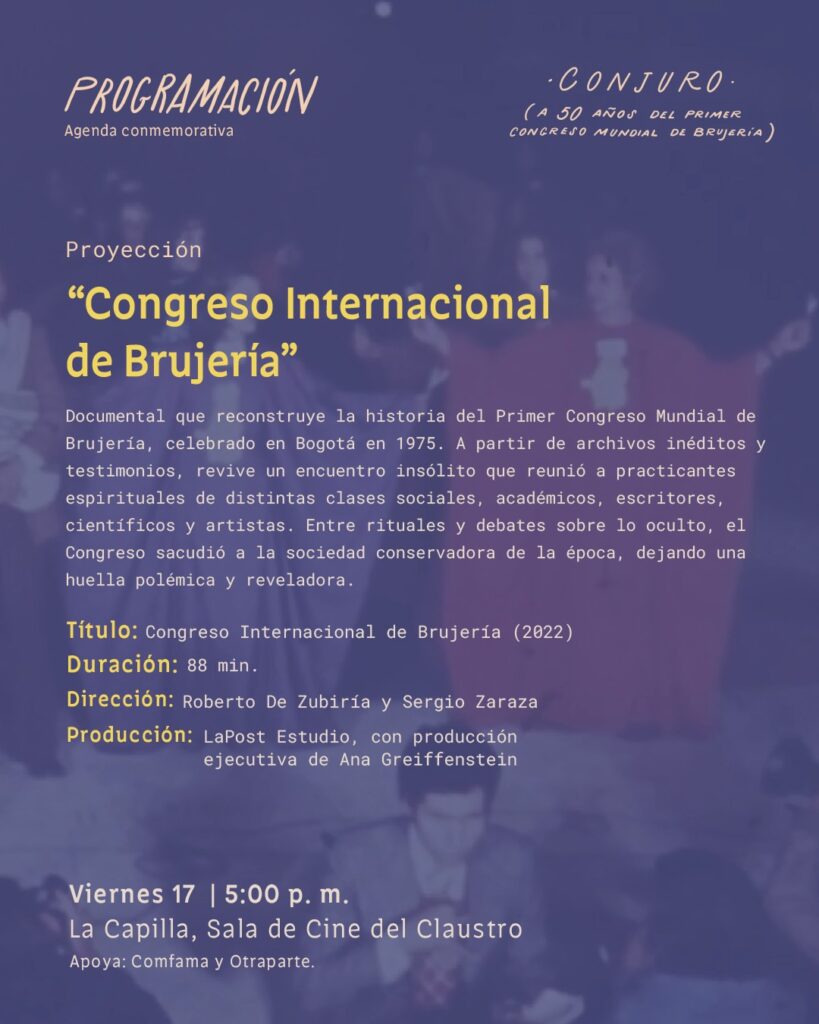 En agosto de 1975 Bogotá fue escenario del Primer Congreso Mundial de Brujería, organizado por Simón González Restrepo. Fueron cuatro días de rituales, conferencias, arte y feria comercial en un encuentro realizado en Corferias que mezcló espiritualidad, provocación y espectáculo. Cincuenta años después, se celebra su aniversario con un espacio dedicado a las espiritualidades y saberes alternativos. Organizado por Julián Sánchez González, PhD, y Angélica Cuevas-Guarnizo, periodista y gestora cultural, con el apoyo de la Corporación Otraparte y Comfama-