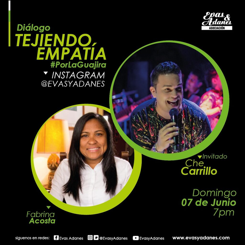Primer grupo de Invitados – Invitadas: Vanessa Daza: Abogada. Nacida y criada en La Guajira, radicada en Bogotá. Activista feminista, una de las Siete Polas. Frank Solano: Arquitecto guajiro, experto en diseño urbano y Magíster en Gestión cultural. Angie Redondo Herrera: Estudiante de X semestre de Ingeniería de Minas y Metalurgia. Conforma el equipo que representará a Sudamérica en la competencia global GoGreen 2020, en la categoría sostenibilidad y acceso a la energía. Che Carrillo: Artista Guajiro.