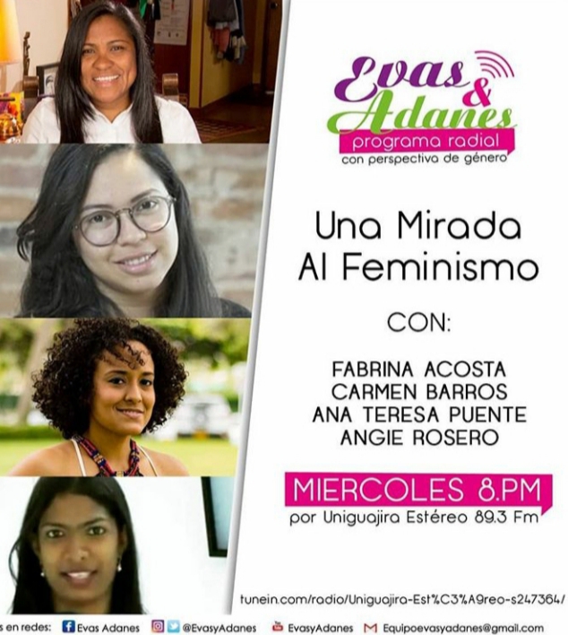 CELEBRAMOS con mucha alegría y esperanza, el IV aniversario de nuestro programa radial #evasyadanes, el cual ha sido una plataforma para proyectar a grandes liderazgos de nuestra tierra Guajira y contenido académico/cultural de calidad con perspectiva de género. Seguimos firmes en esta iniciativa, no podemos silenciarnos porque esta causa social merece cada vez más visibilización, alianzas y apropiación.